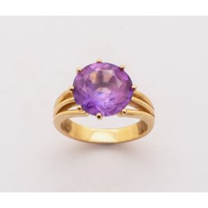 Sortija en oro con amatista talla redonda de 13 mm. engastada en garras.