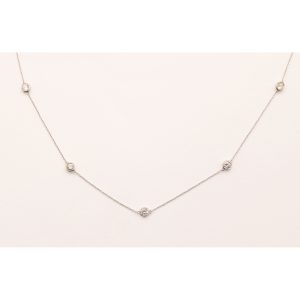 Gargantilla de cadena forjada en oro blanco con chatones de diamantes talla brillante alternados.