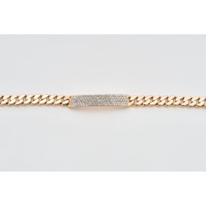 Pulsera nomeolvides en oro rosa con placa de diamantes talla brillante.