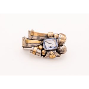 Broche en plata y vistas en plata dorada con símil de topacio azul de 14 x 11 mm, c. 1940.