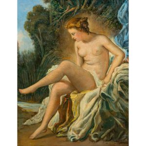 La composición de este cuadro remite claramente a los estudios y pinturas de Alonso Cano sobre el Niño Jesús y San Juanito, como los dibujos conservados en el Museo del Prado y la pintura homónima del Hermitage. Comparte el esquema compositivo característico: San Juan arrodillado junto al cordero y la cruz que conecta ambos niños, la disposición íntima de las figuras y el modelado tierno de los rostros infantiles, reflejando la sensibilidad de Cano para unir clasicismo, idealización y emoción barroca. Estimación:12000 – 15000€