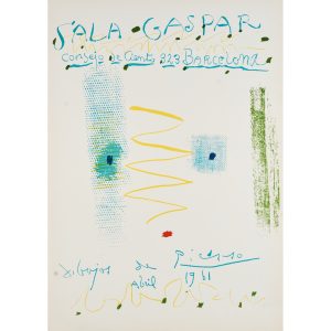 Cartel litográfico sobre papel para la exposición de la Sala Gaspar, Barcelona, en abril de 1961. Firmada y fechada en plancha. Sin numerar.
