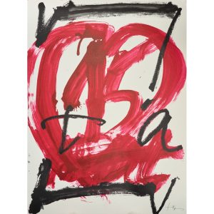 Litografía en varias tintas sobre cartón. Firmada y justificada H.C. 22/25 en números romanos a lápiz. Obra realizada para los carteles de la exposición «Antoni Tàpies. Exposición Retrospectiva.» del Museo Español de Arte Contemporáneo de Madrid, 1980. Bibliografía: Reproducido en el libro «Tàpies. Obra Gàfica 1979-1986» por Mariuccia Galfetti. Pág. 56. Nº751. Edita Gustavo Gili, Barcelona, 2002.
