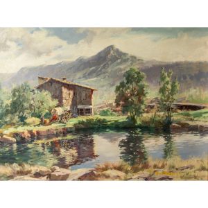 Óleo sobre tela. Firmado. Firmado y localizado en el Valle de Arán al dorso.