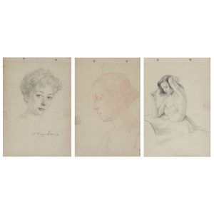 Bailarina peinándose, Retrato de dama y Joven de perfil.