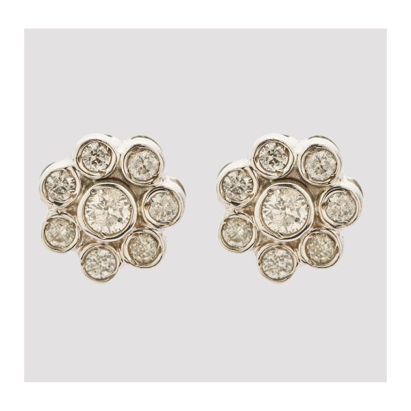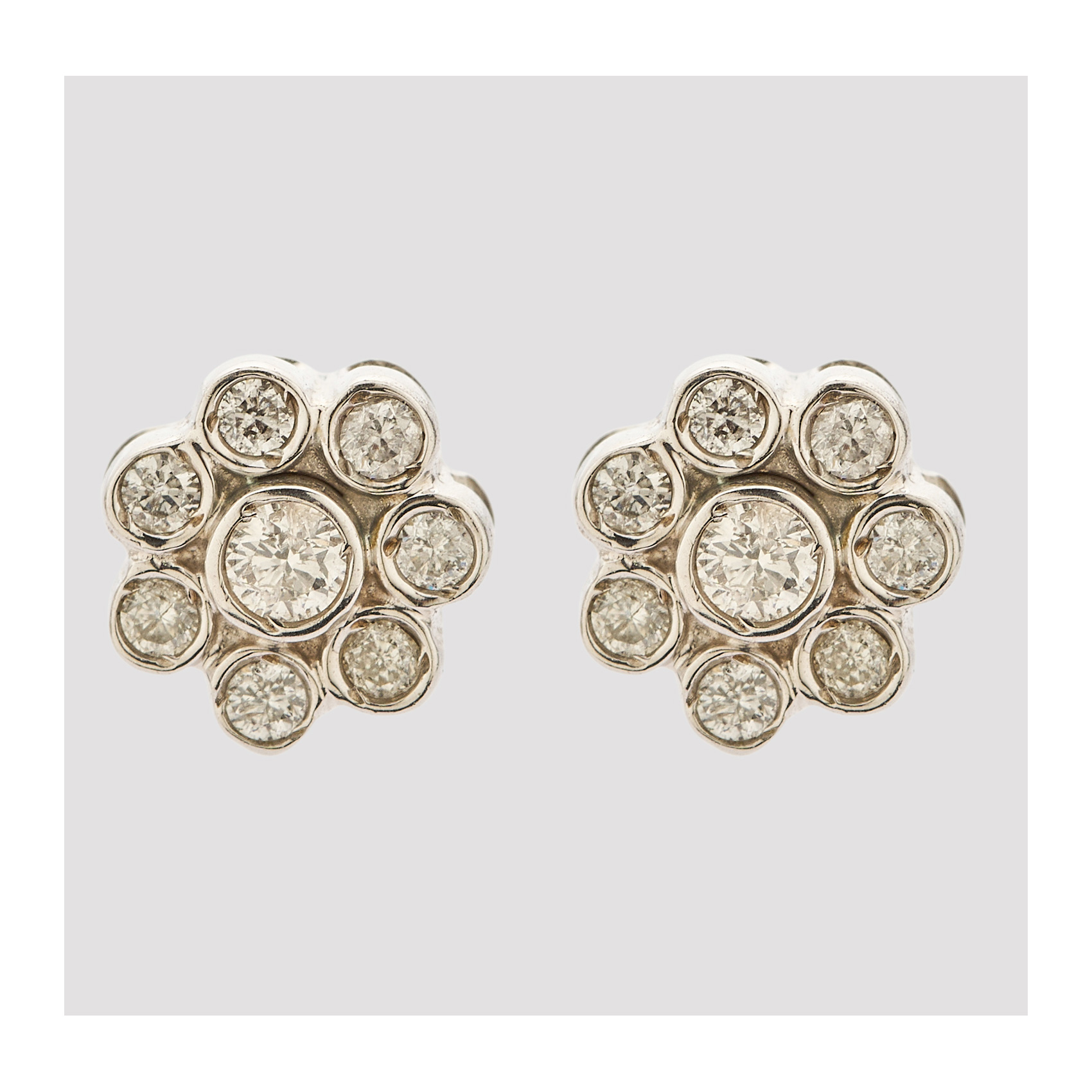 Pendientes rosetón en oro blanco con diamantes talla brilllante engastados en chatón.