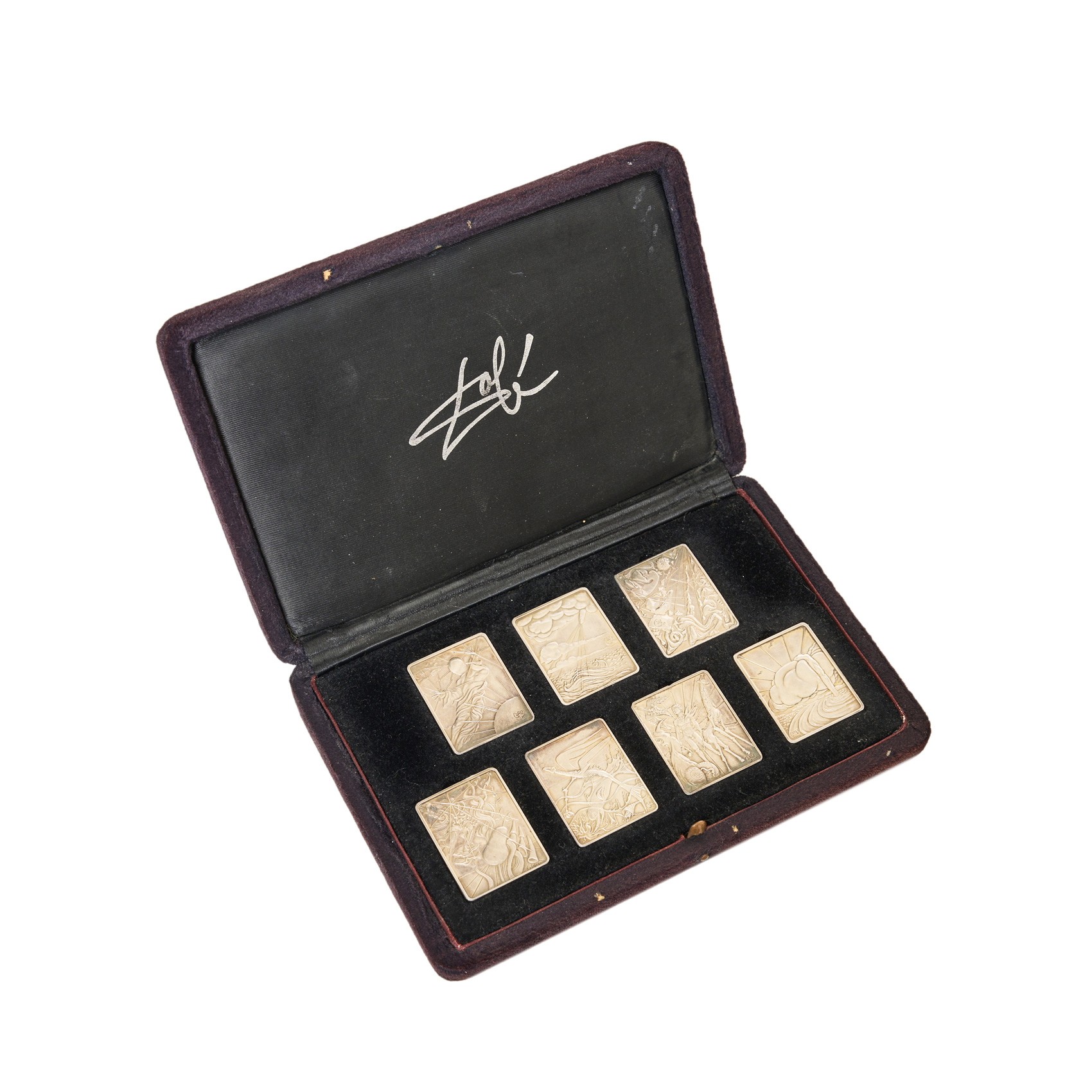 Los siete días de la creación. Juego de siete placas en plata española punzonada 1000. Firmadas y numeradas 288. Adjunta estuche.