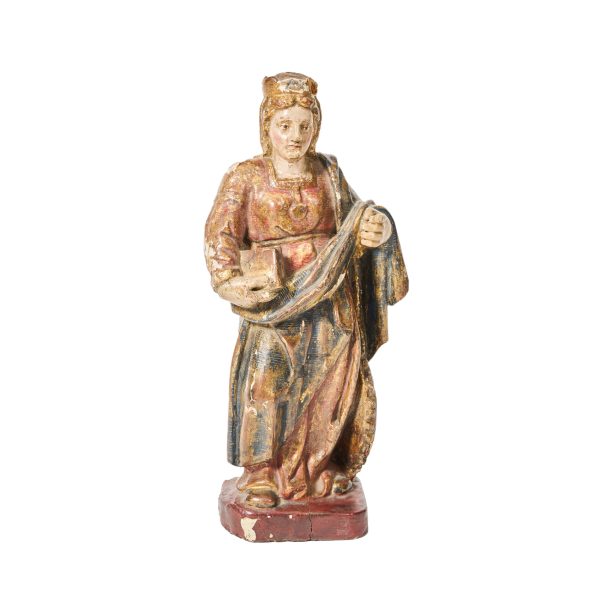 Escultura en madera tallada, policromada y parcialmente dorada.