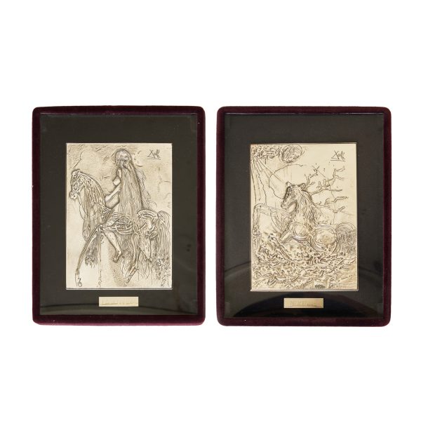 Pareja de placas en plata 999. Ejemplares 209 y 202 de una serie de 999 ejemplares. Adjunta documentación adherida al dorso. Enmarcadas.