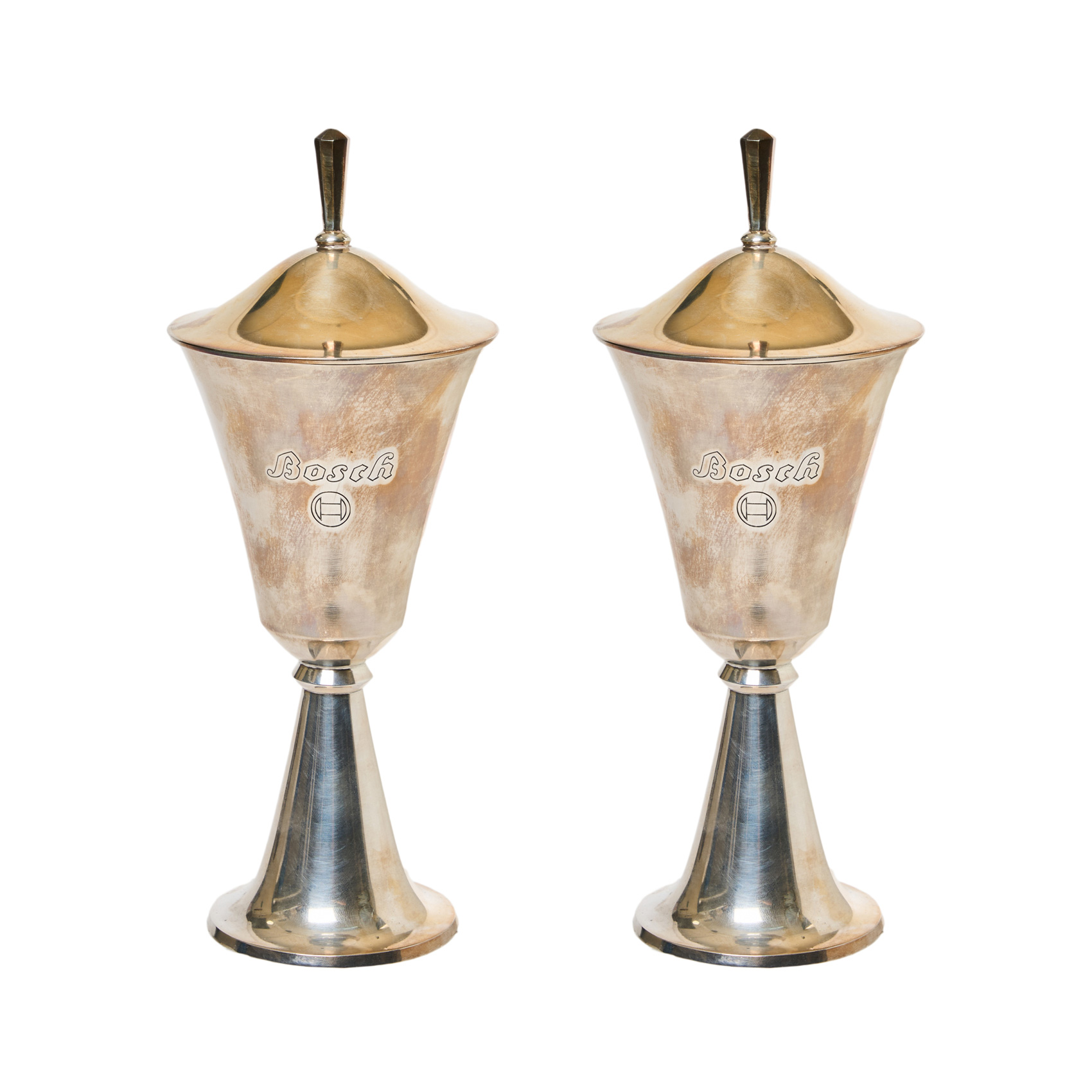 Pareja de copas en plata alemana punzonada 835, s.XX. Interior en vermeil. Marcas en la base.