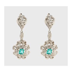 Pulsera esclava diseño abierto en plata con flor central de símiles de granate talla marquise y de topacio