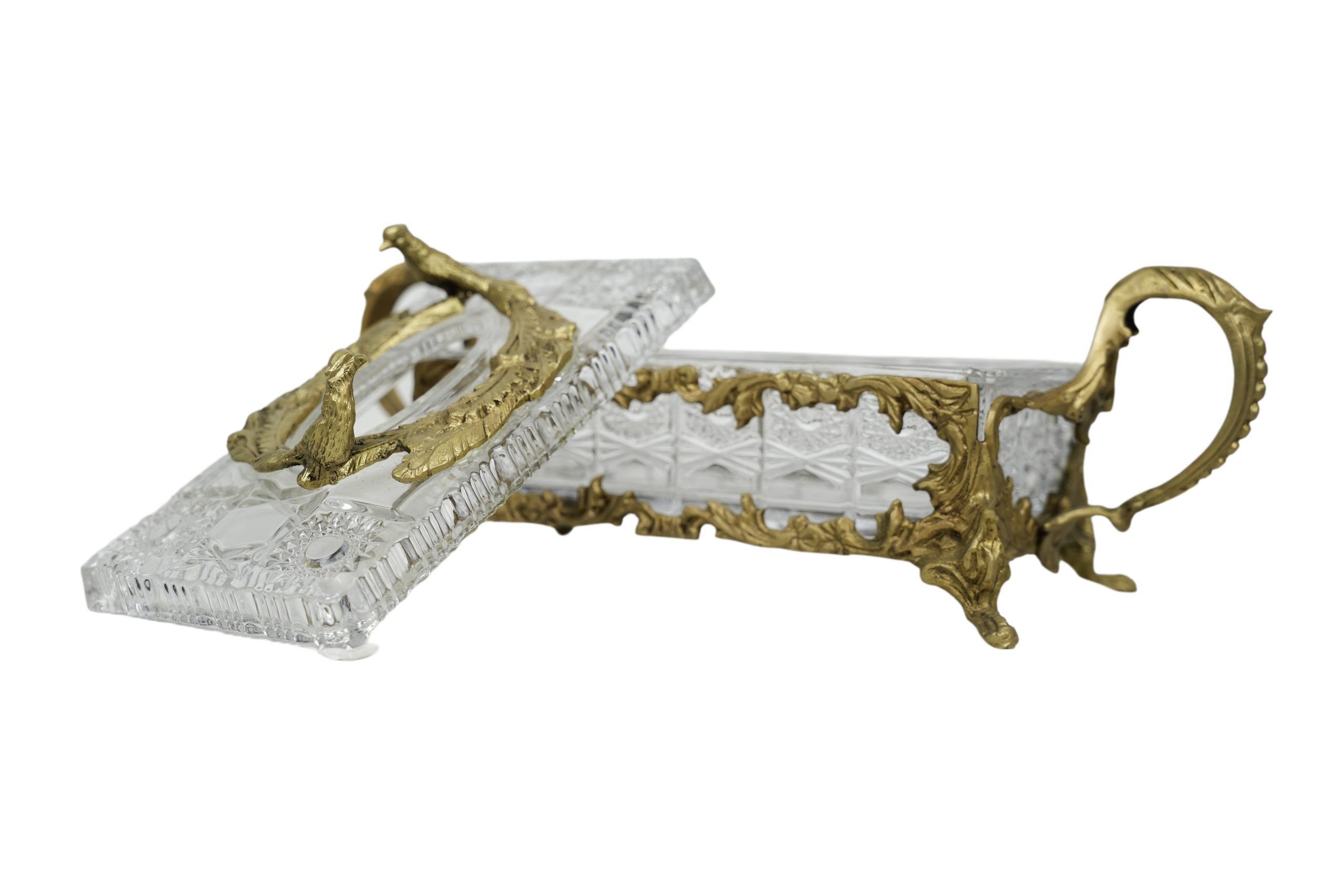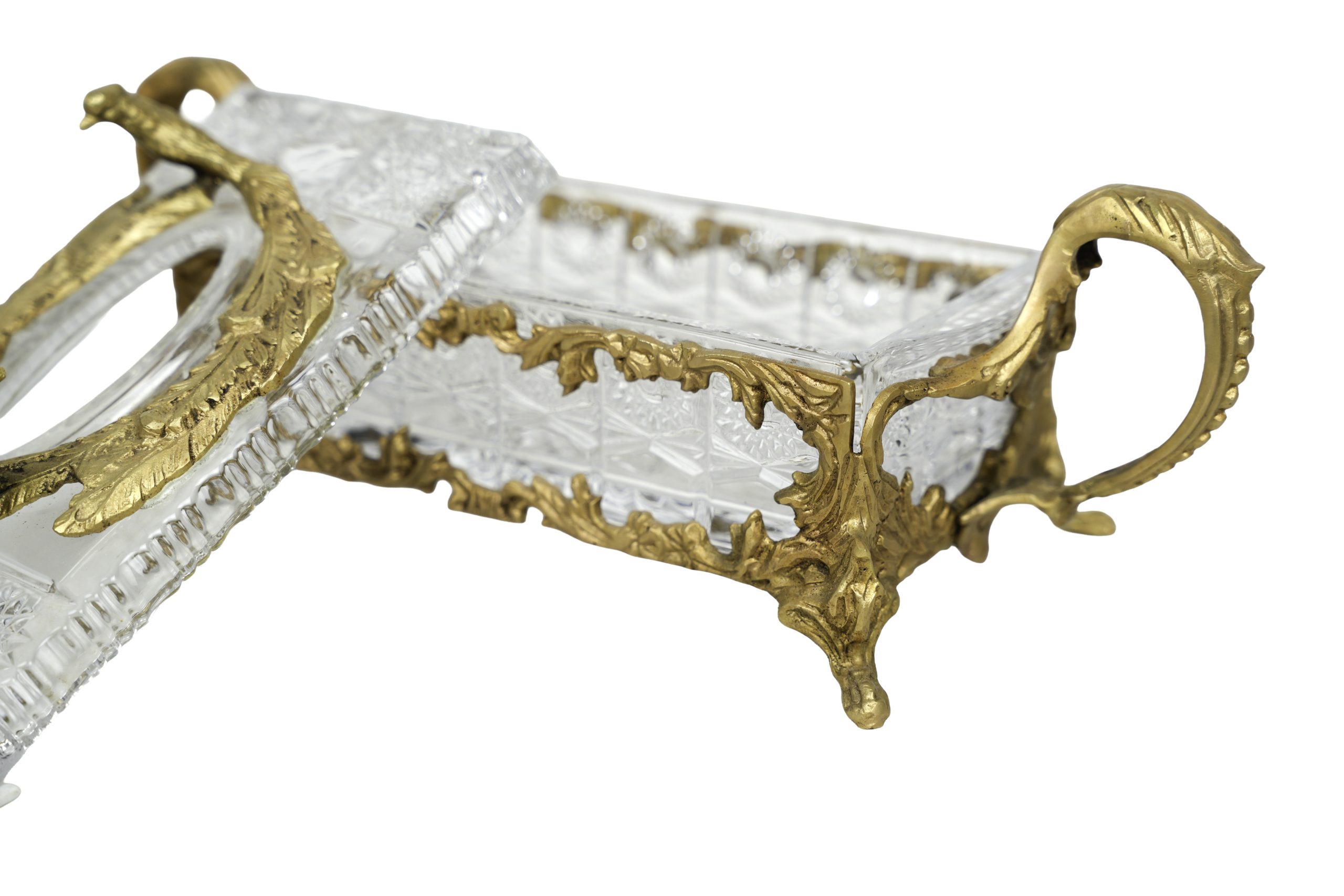 Caja en cristal tallado con asas y montura en bronce dorado, s.XX.