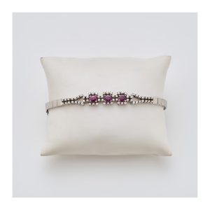 Pulsera de malla en plata con símiles de amatista talla redonda