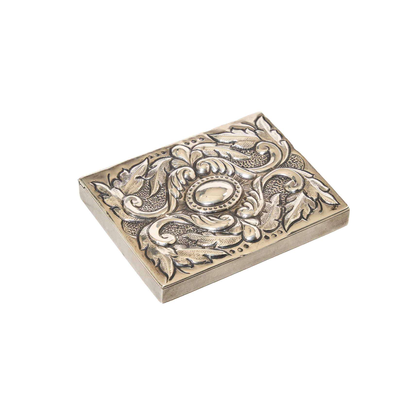 Cajita en plata repujada con decoraciones de motivos vegetales, s.XX.