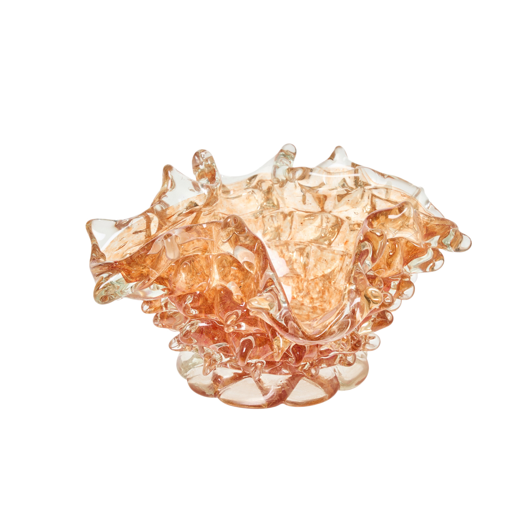 Centro en cristal de Murano «rostrato» «bioform» de tonalidad ámbar. Bibliografía: Reproducido en el libro «Art of Barovier, Glass makers in Murano, 1866-1972» por Mario Barovier. Pág. 135. Editorial Arsenale, 2008.