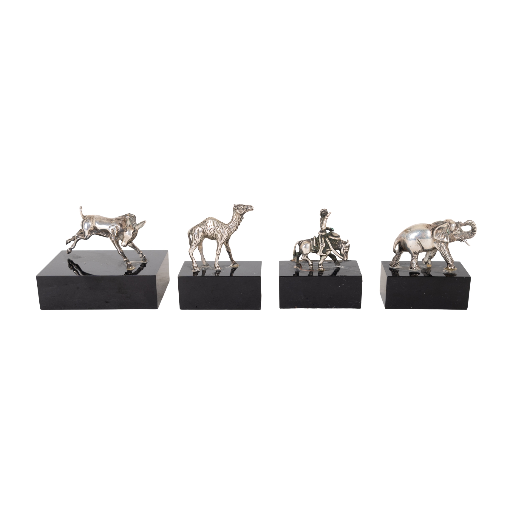 Lote de cuatro miniaturas en plata sobre peanas en madera lacada, s.XX
