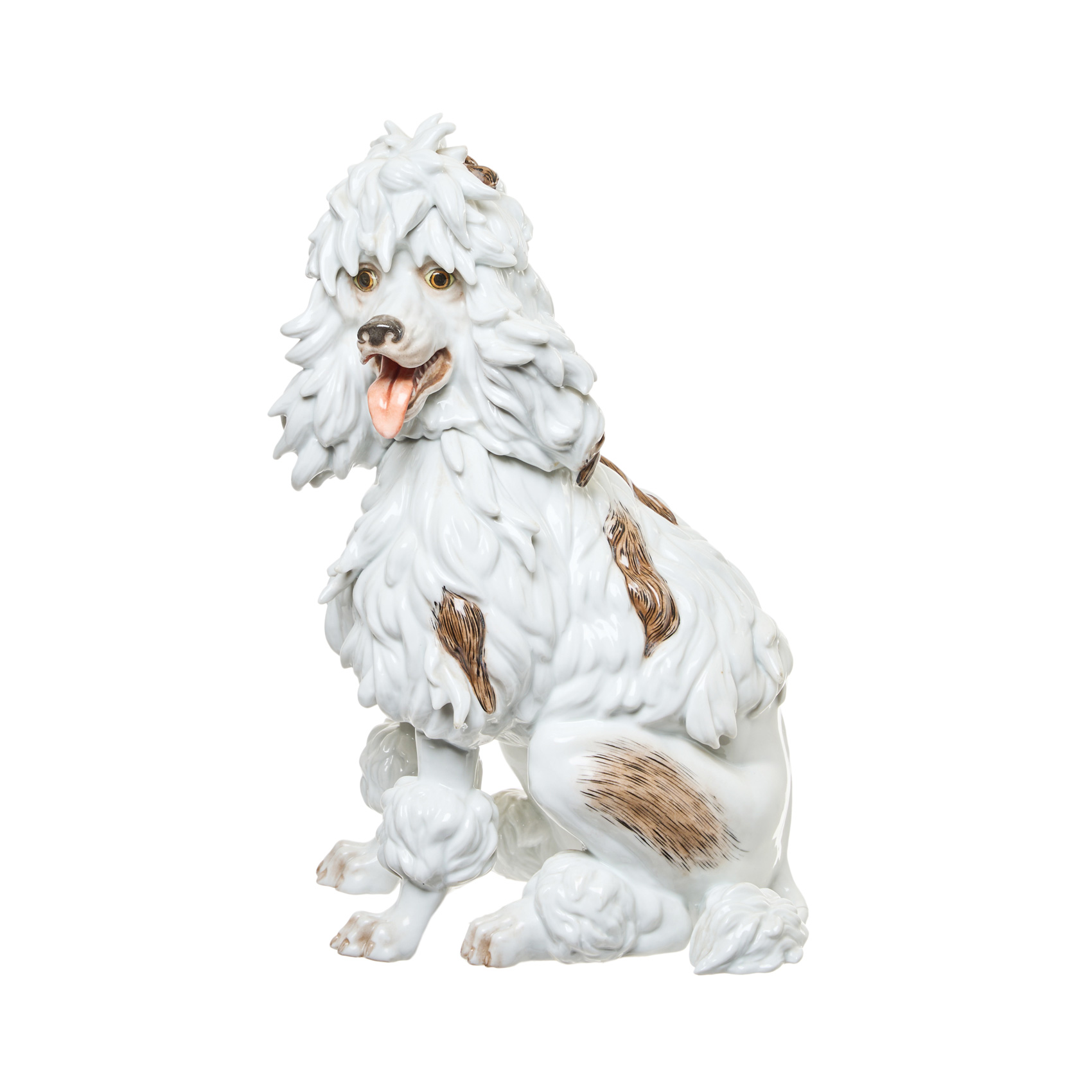 Perro Caniche. Figura en porcelana española de Algora, fles. del s.XX.