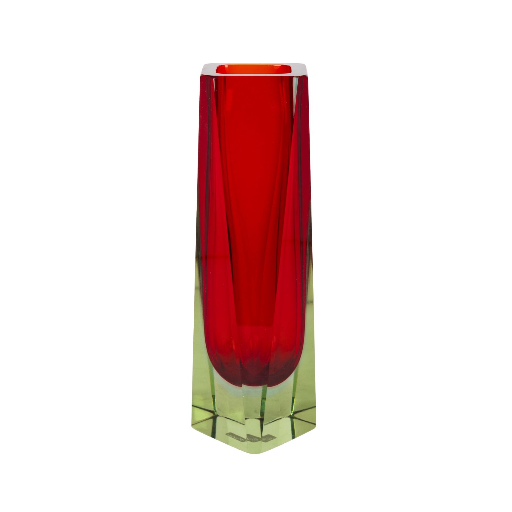 Jarrón en cristal facetado «sommerso» de tonalidad translúcida y rojo rubí, c.1960.