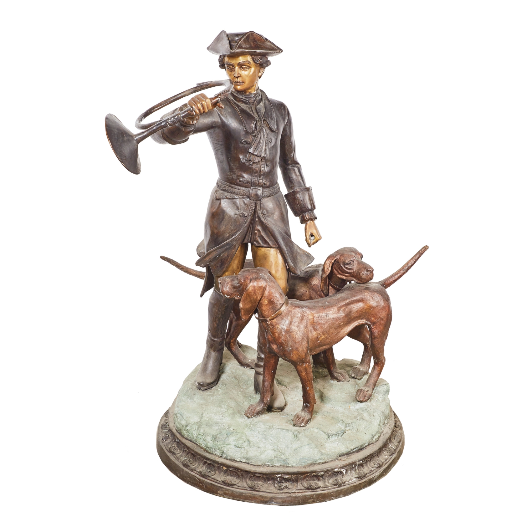 Cazador con perros y corneta.