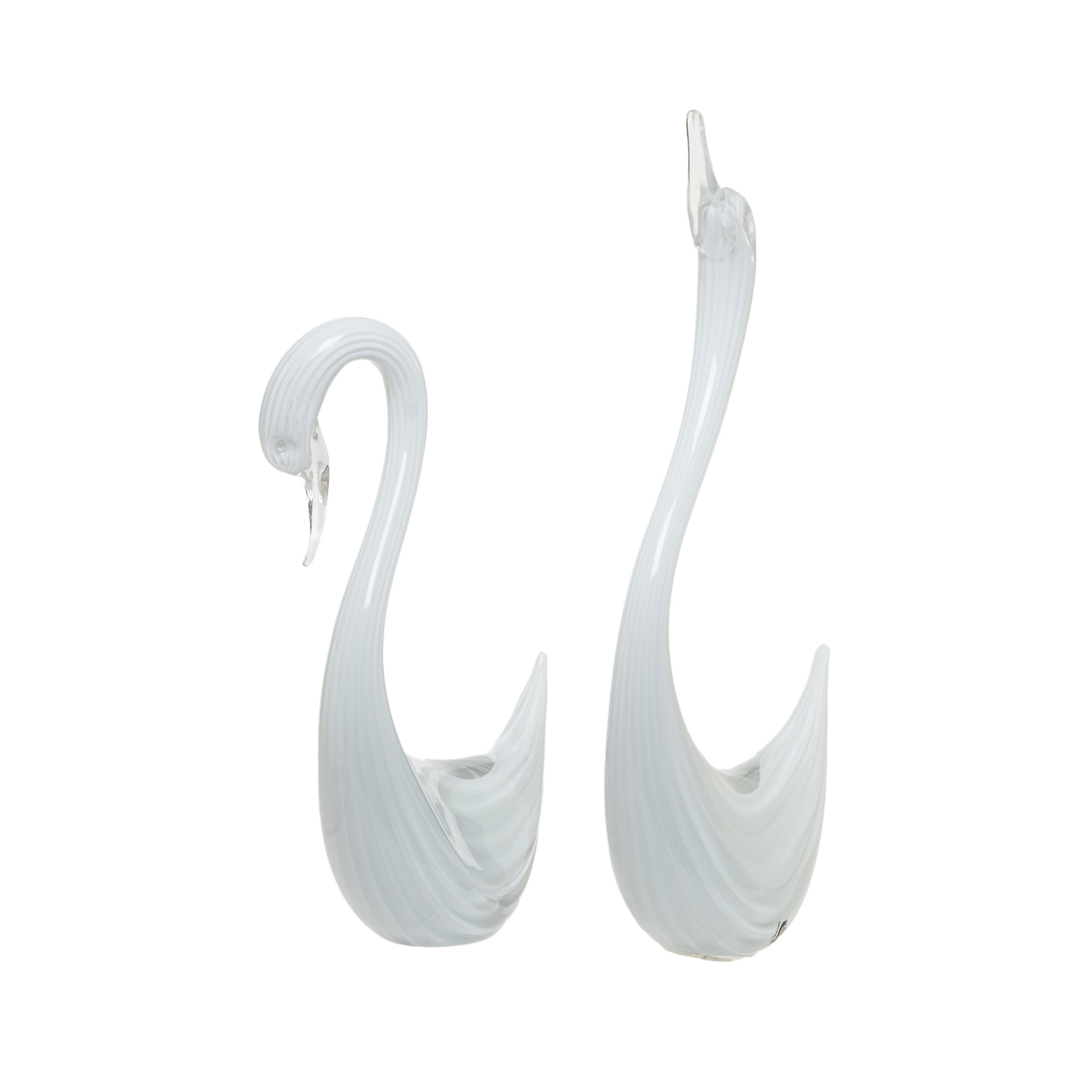 Pareja de cisnes en cristal de Murano «sommerso» de tonalidades blancas y translúcidas, s.XX. Etiquetas de origen.