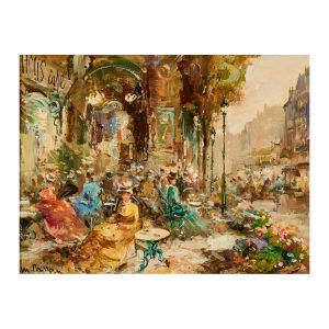 Sortija en oro y vistas en platino con flor de diamantes talla rosa holandesa, símiles de zafiro azul talla redonda y rubíes calibrados, c.1940.