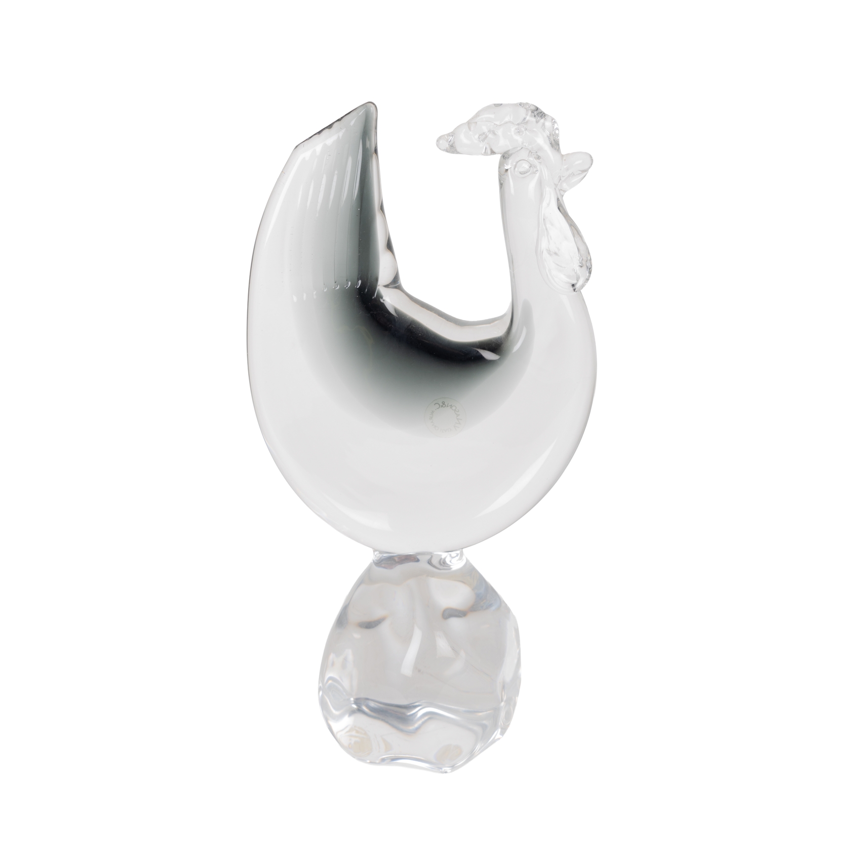 Gallo. Escultura en cristal de Murano «sommerso» de tonalidad translúcida y fumé. Etiqueta de origen.