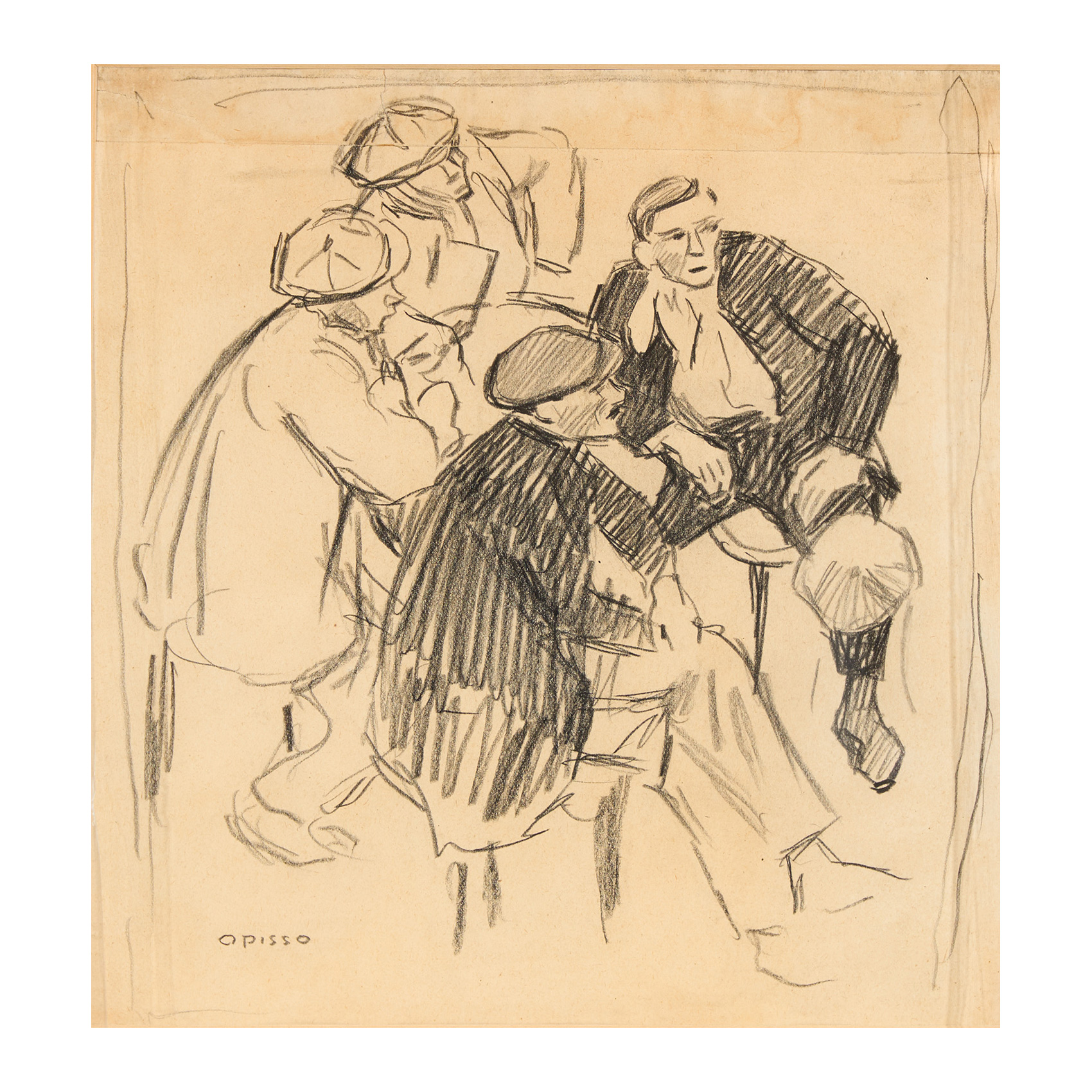 Dibujo a carboncillo sobre papel. Firmado.