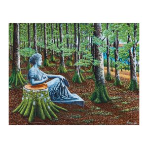 Dibujo a lápices de color y acuarela sobre papel. Firmado.