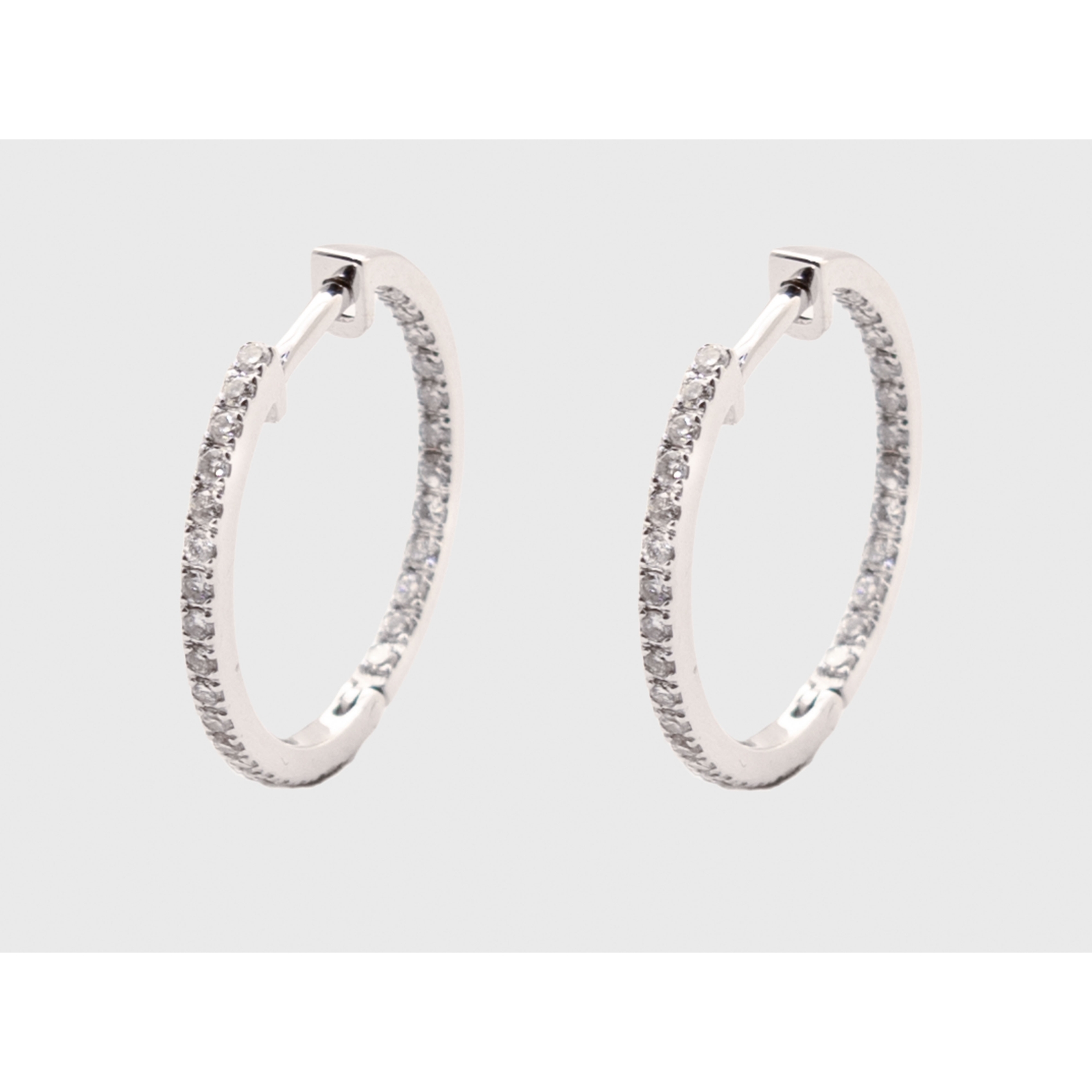 Pendientes criolla en oro blanco con frente y parte interior trasera de diamantes talla brillante.
