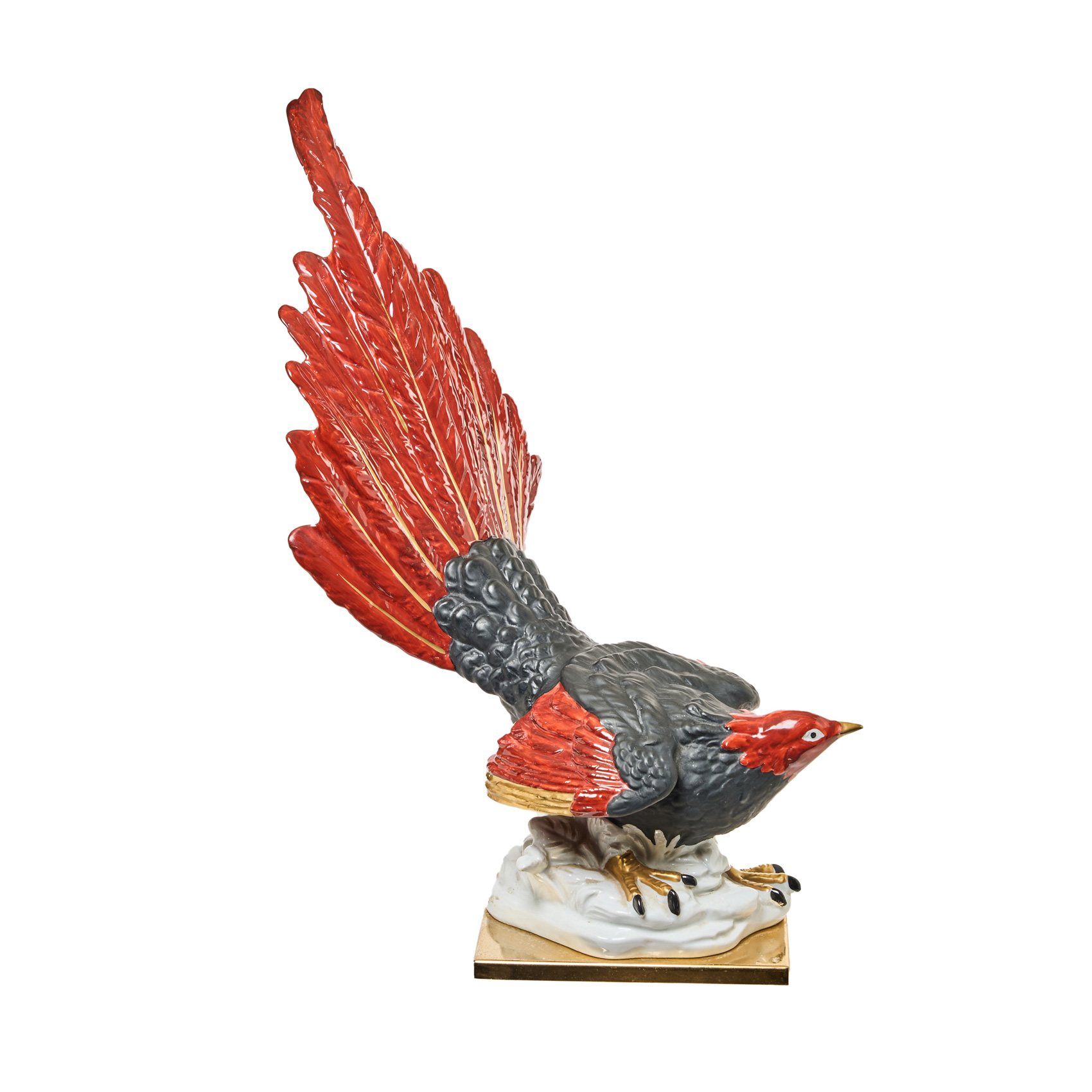 Faisán en porcelana italiana de Capodimonte esmaltada y parcialmente dorada, mediados del s.XX. Marcas al dorso.