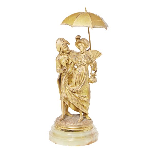 Escultura en calamina dorada sobre peana en ónix. Firmada L.Raphaël.