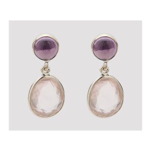 Pendientes dos flores en plata y caucho