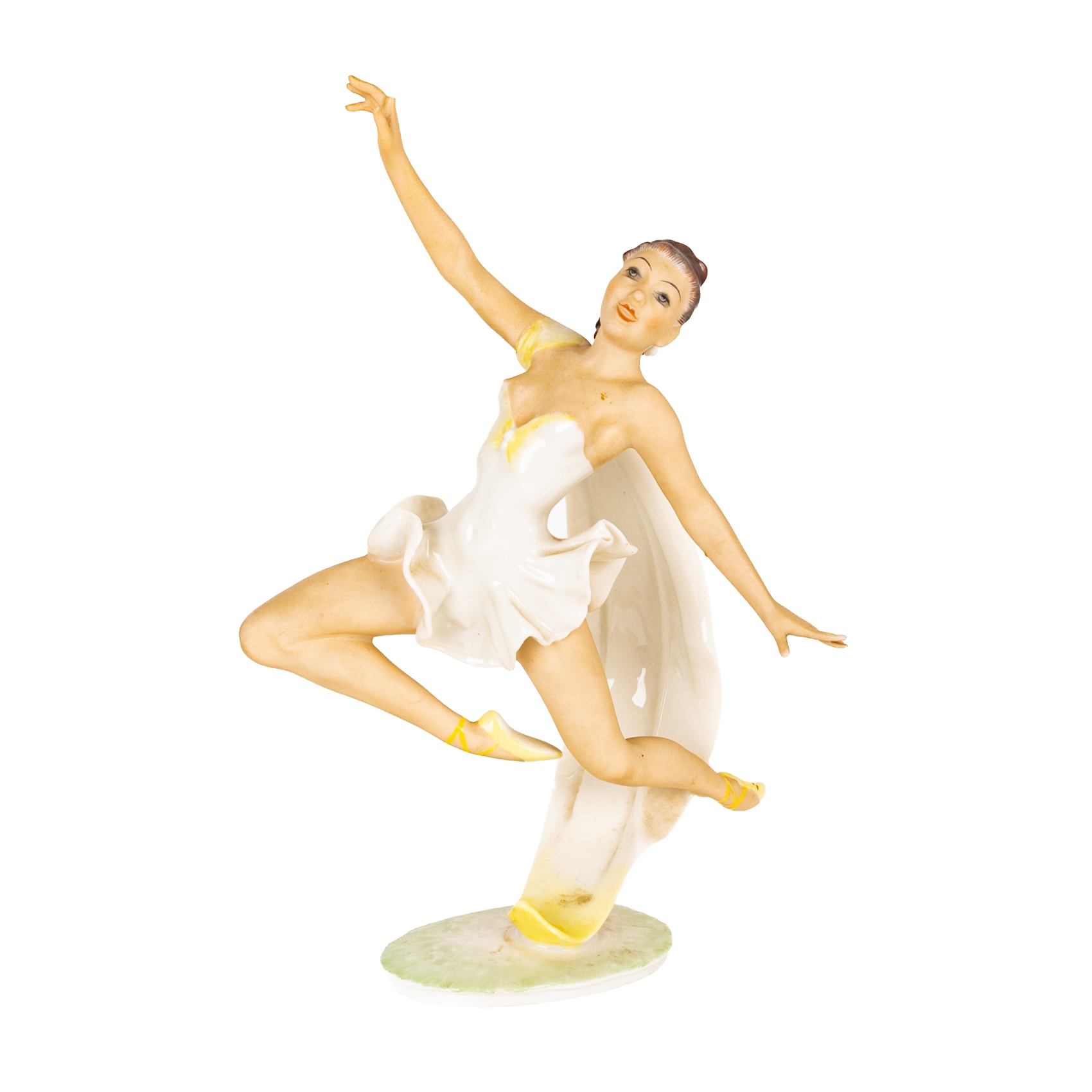 Bailarina. Figura en porcelana alemana esmaltada, s.XX. Marcas en la base.
