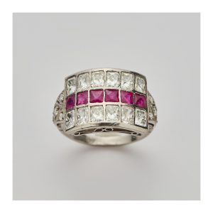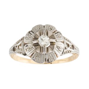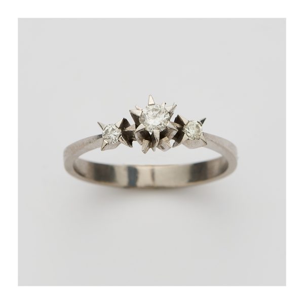 Sortija en oro blanco con tres diamantes talla brillante engastados en garras.
