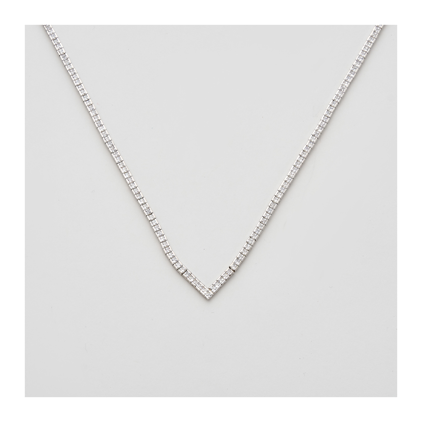 Gargantilla rivière diseño en pico en plata y circonitas talla princesa.