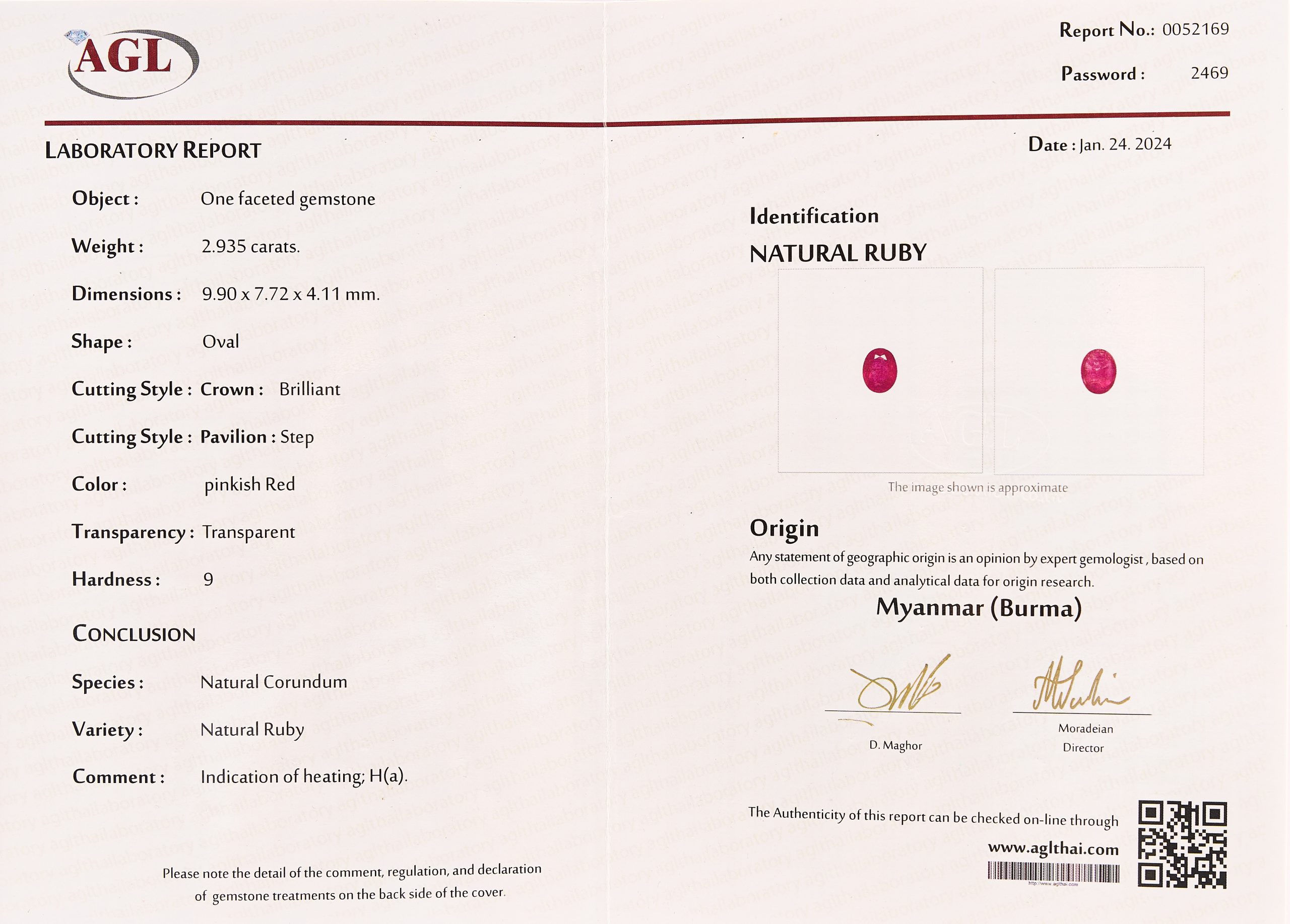 Peso rubí: 2,93 ct.