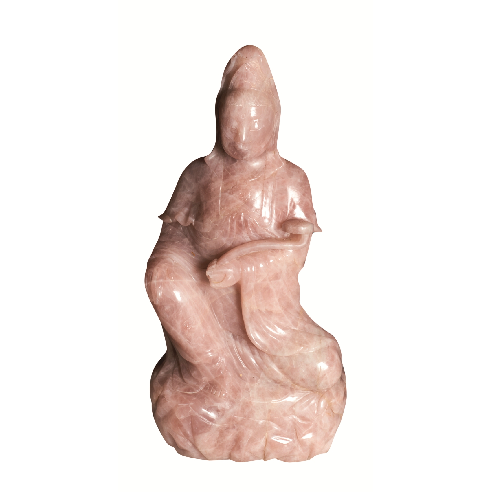 Guayin. Escultura china en cuarzo rosa tallado, mediados del s.XX.