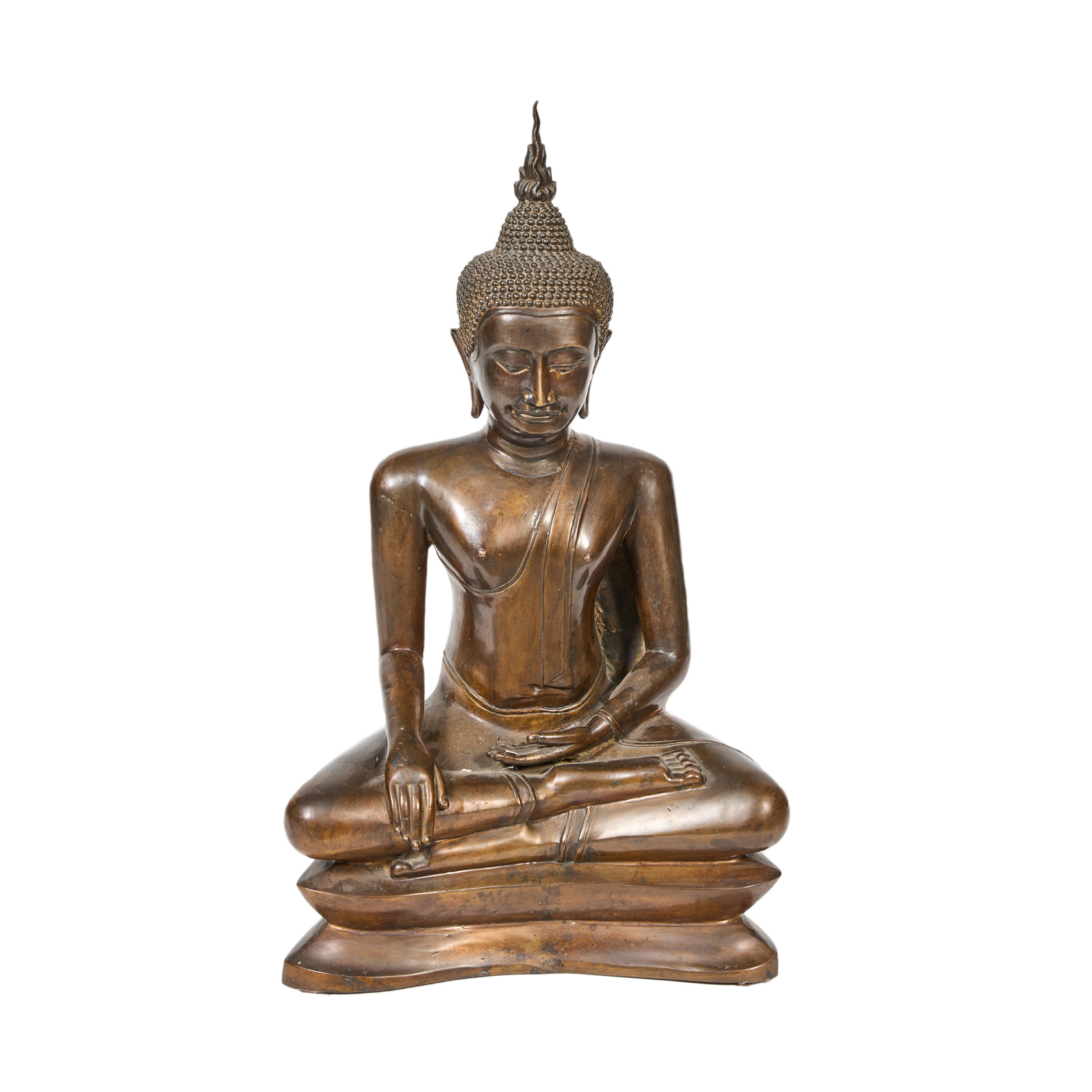 Buda en posición Bhumisparsha. Escultura oriental en bronce patinado, s.XX.