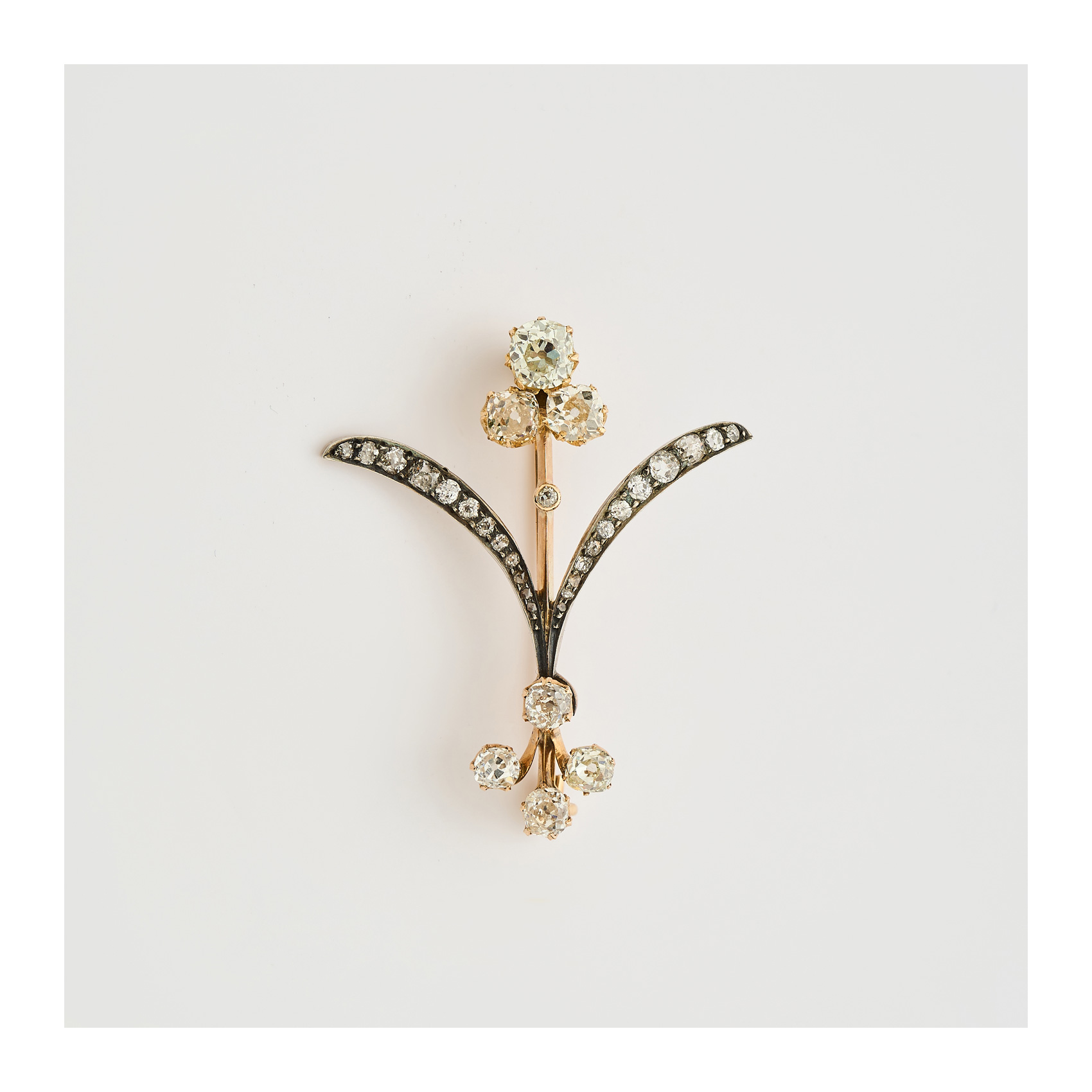 Broche isabelino en oro y vistas en plata con diamantes talla brillante antigua, tercer cuarto del s. XIX.