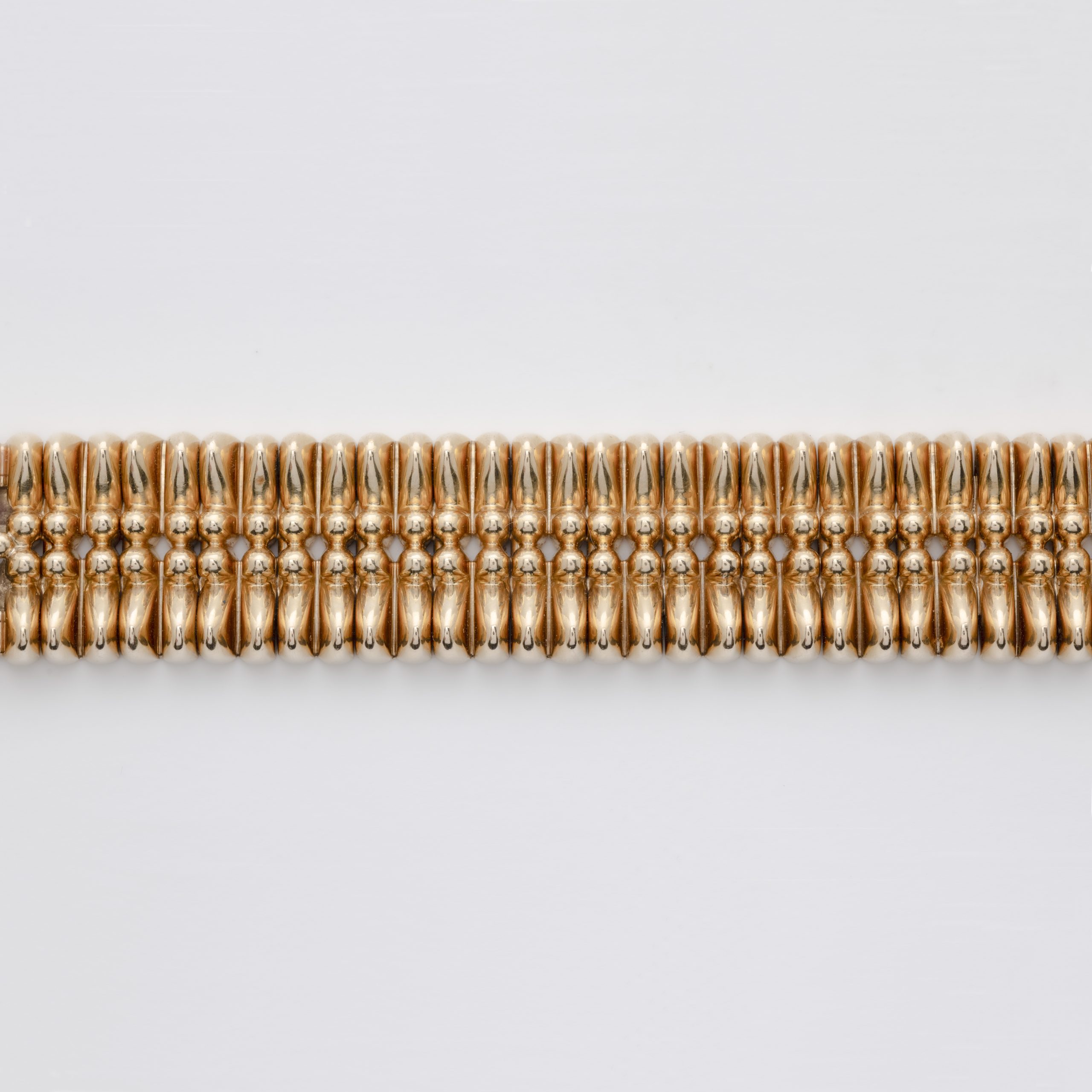 Pulsera en oro gallonada tipo brazalete articulada.