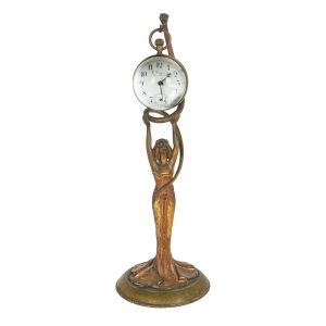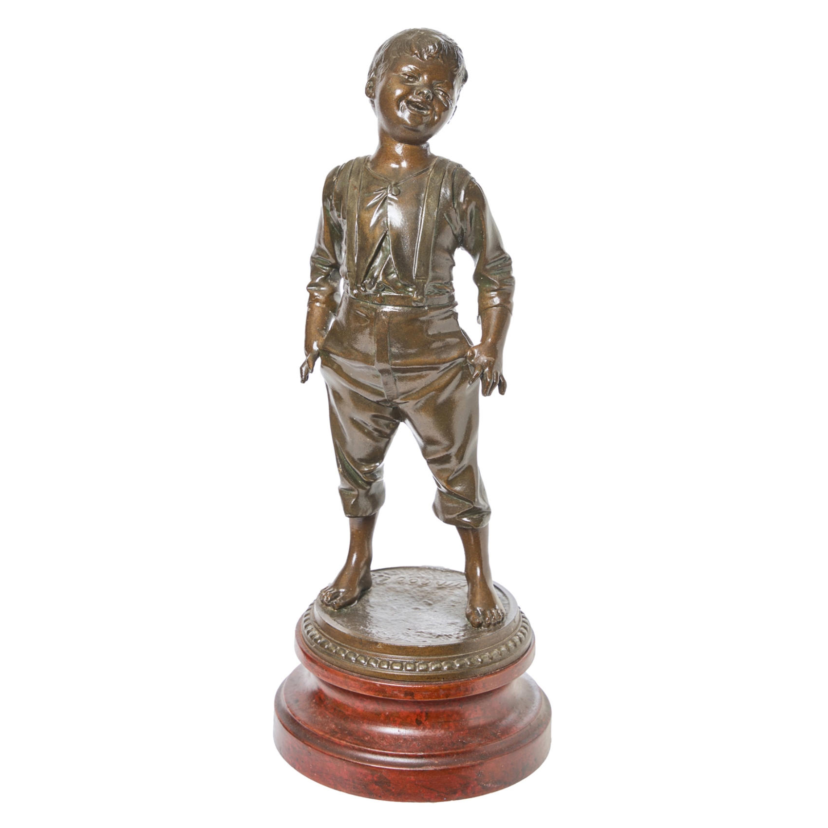 Escultura en calamina patinada sobre peana en madera. Firmada.