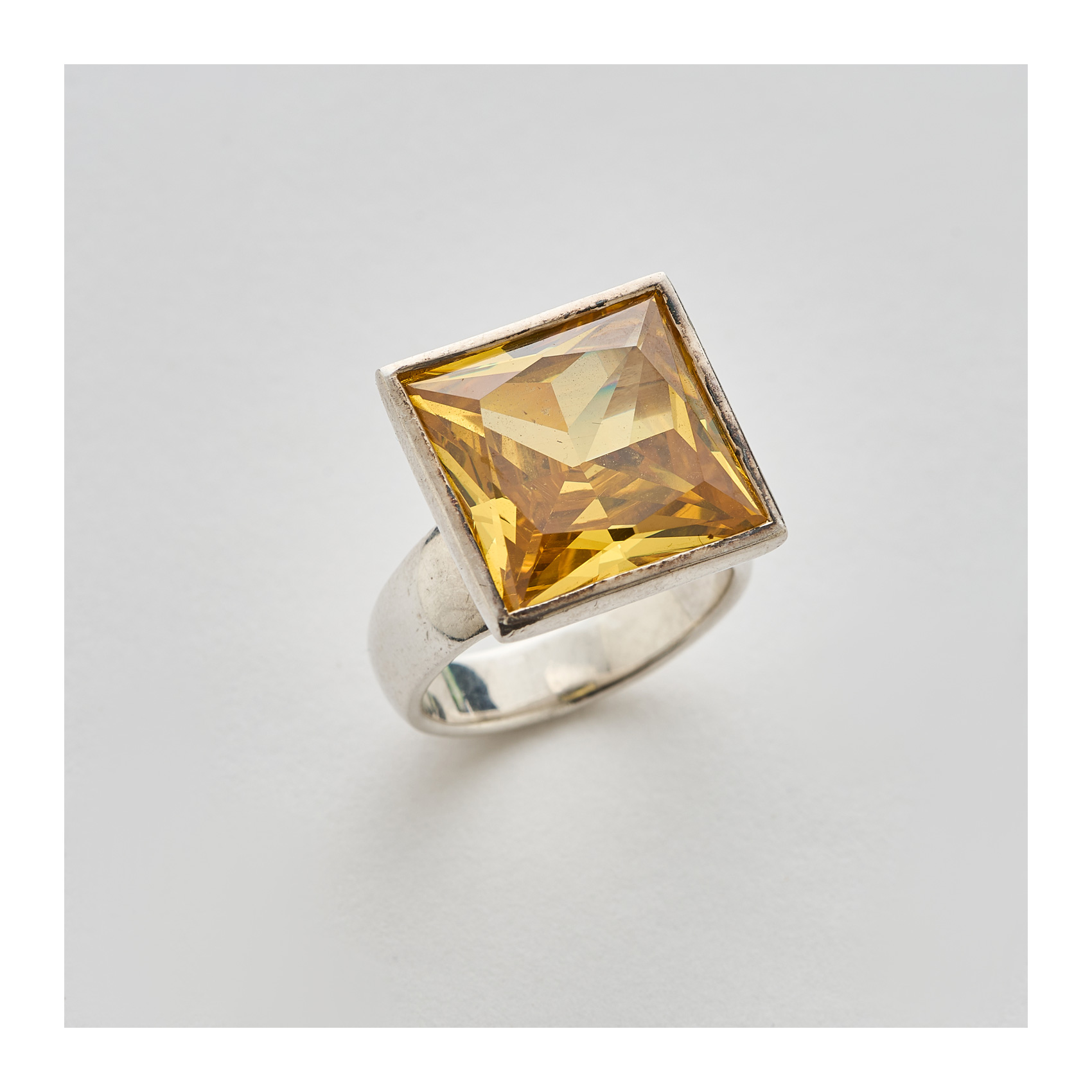 Sortija en plata con símil de citrino talla carré de 6 x 6 mm.