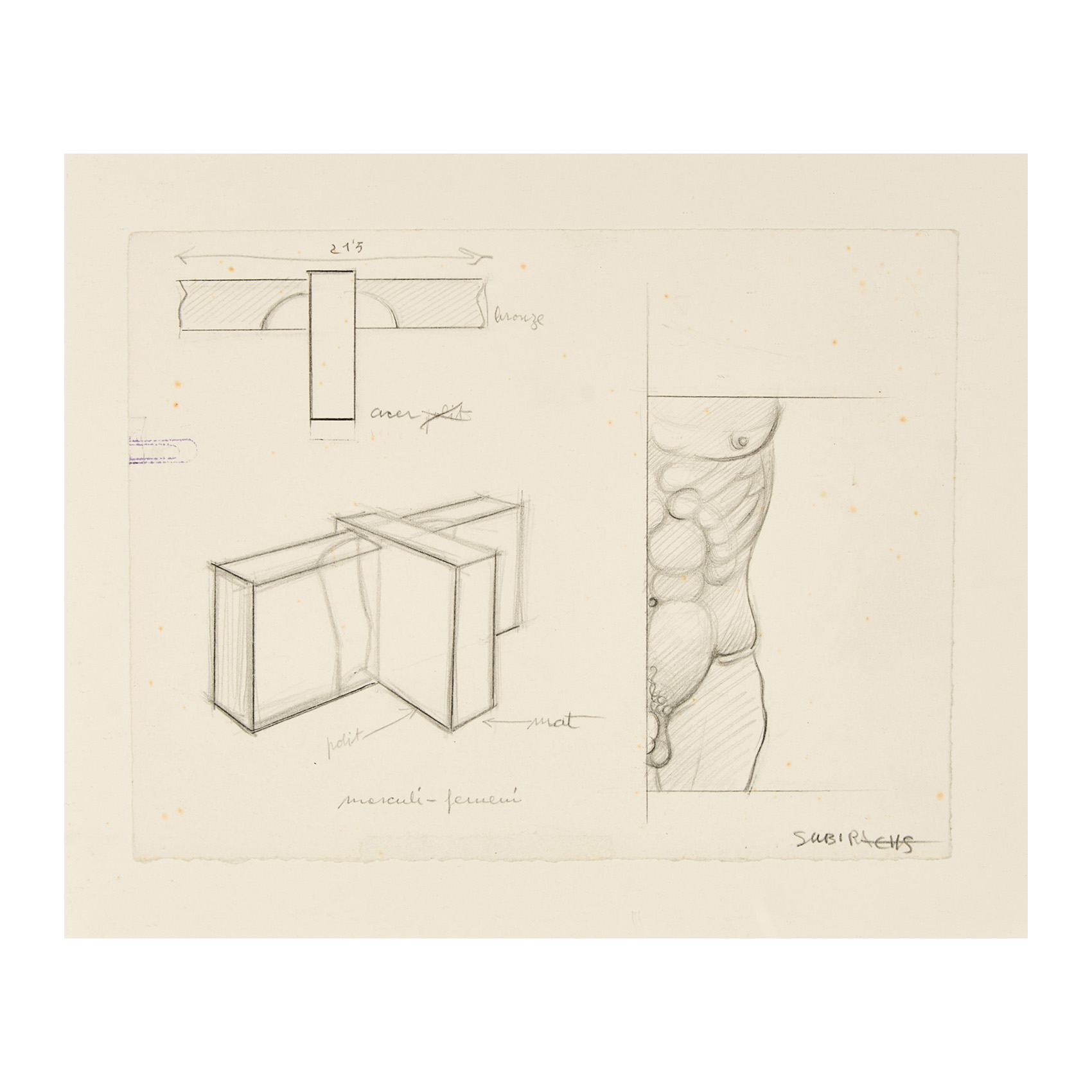 Dibujo a lápiz grafito sobre papel. Firmado y titulado. Boceto para proyecto escultórico.
