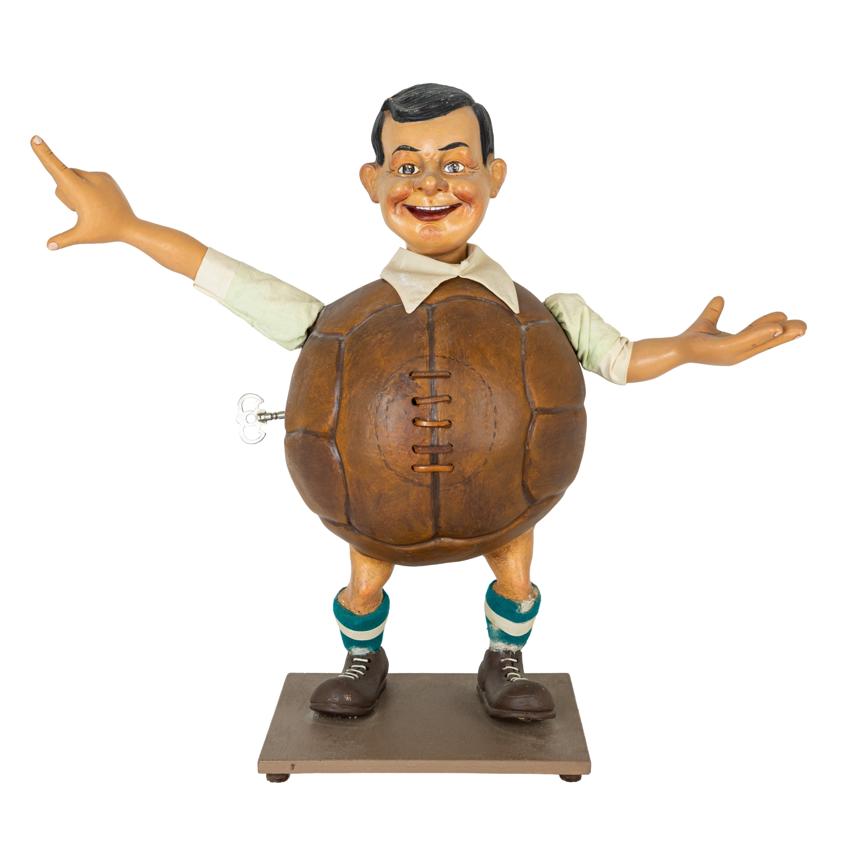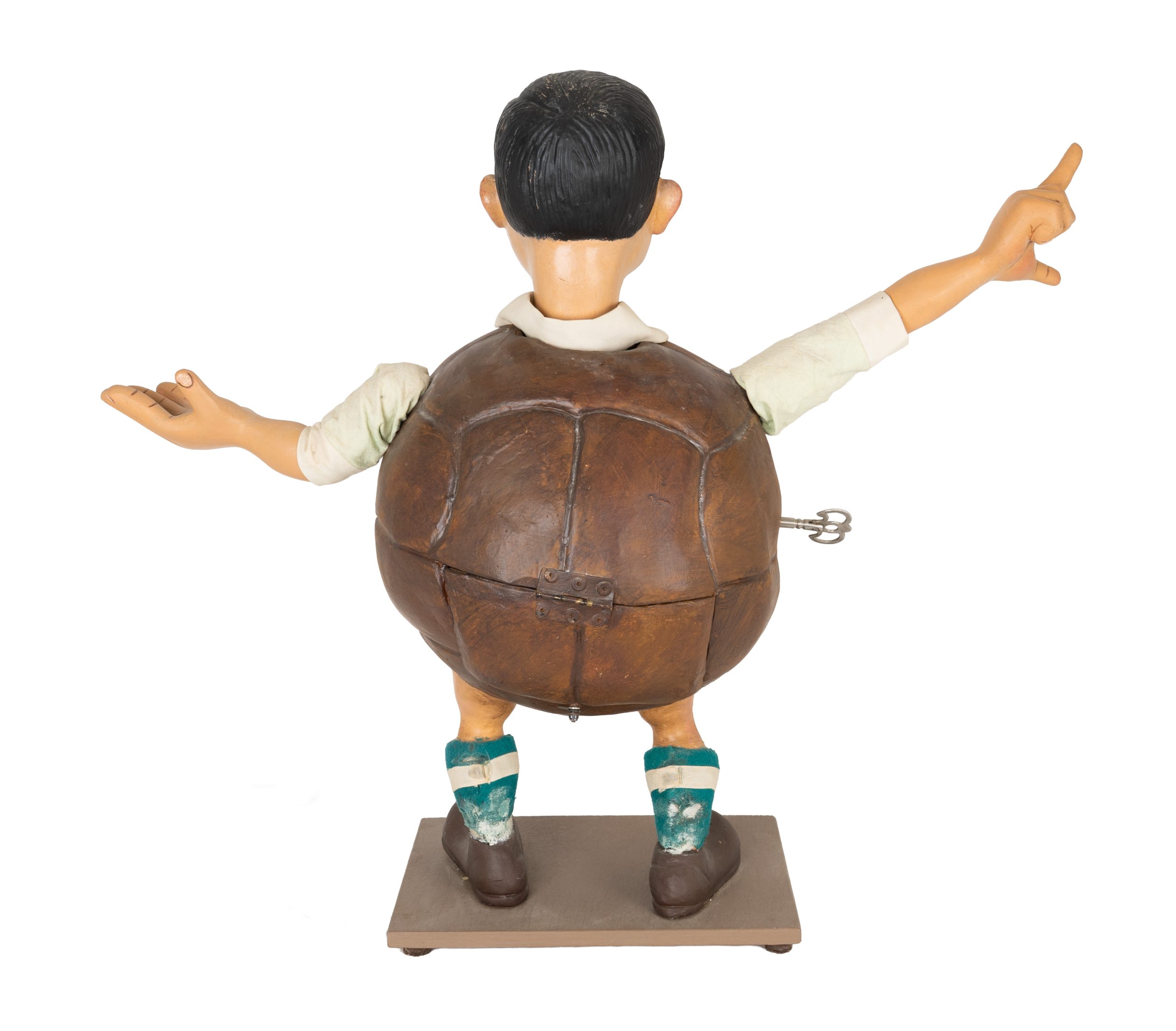 L’home pilota de Verdú. Autómata catalán en madera, papel maché y acabados en tela, s.XX. Mecanismo eléctrico. Copia del original a cuerda conservado en el Museu de Joguets i Autòmats de Verdú, Lleida.