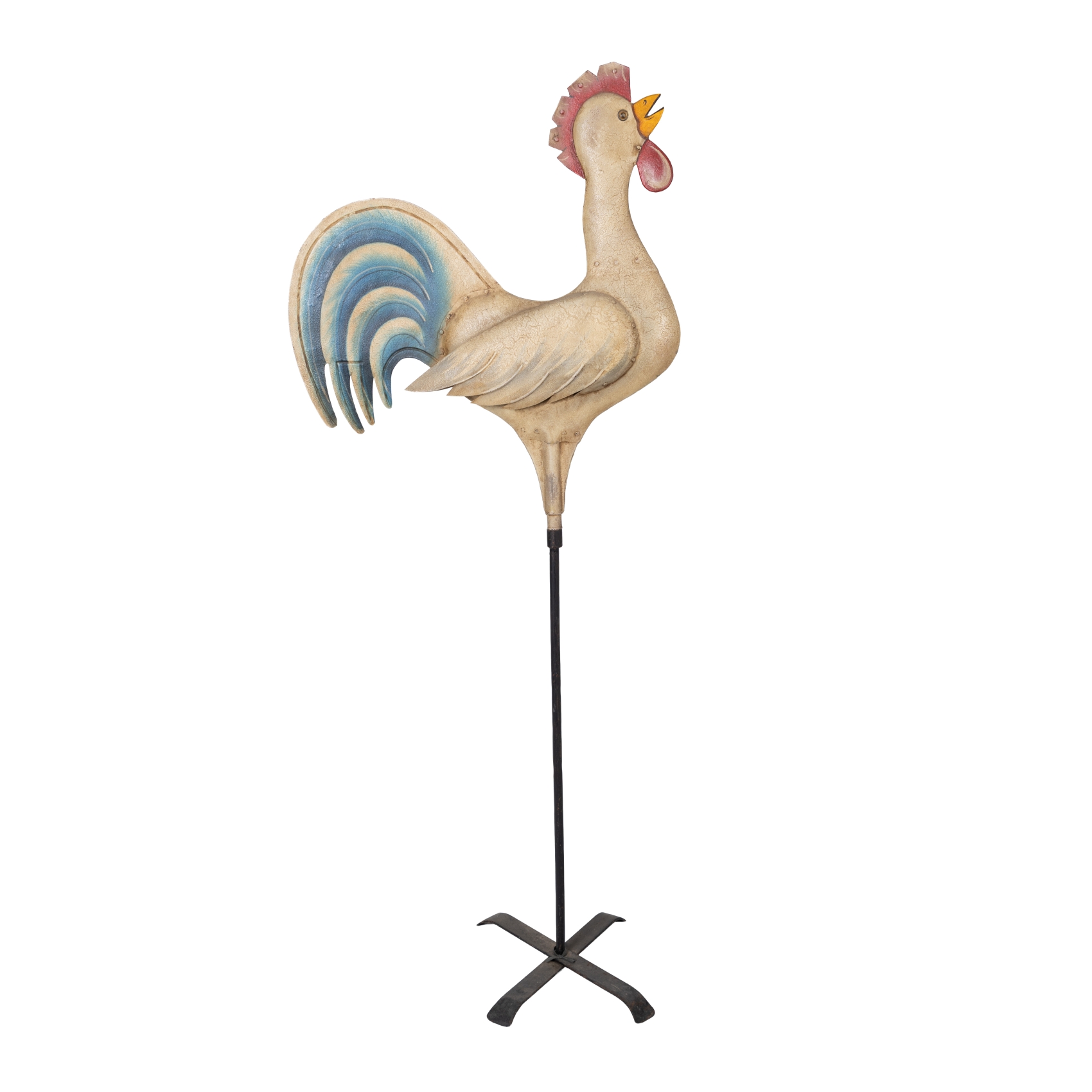 Gallo móvil en metal lacado en varios colores con soporte en metal lacado, s.XX.