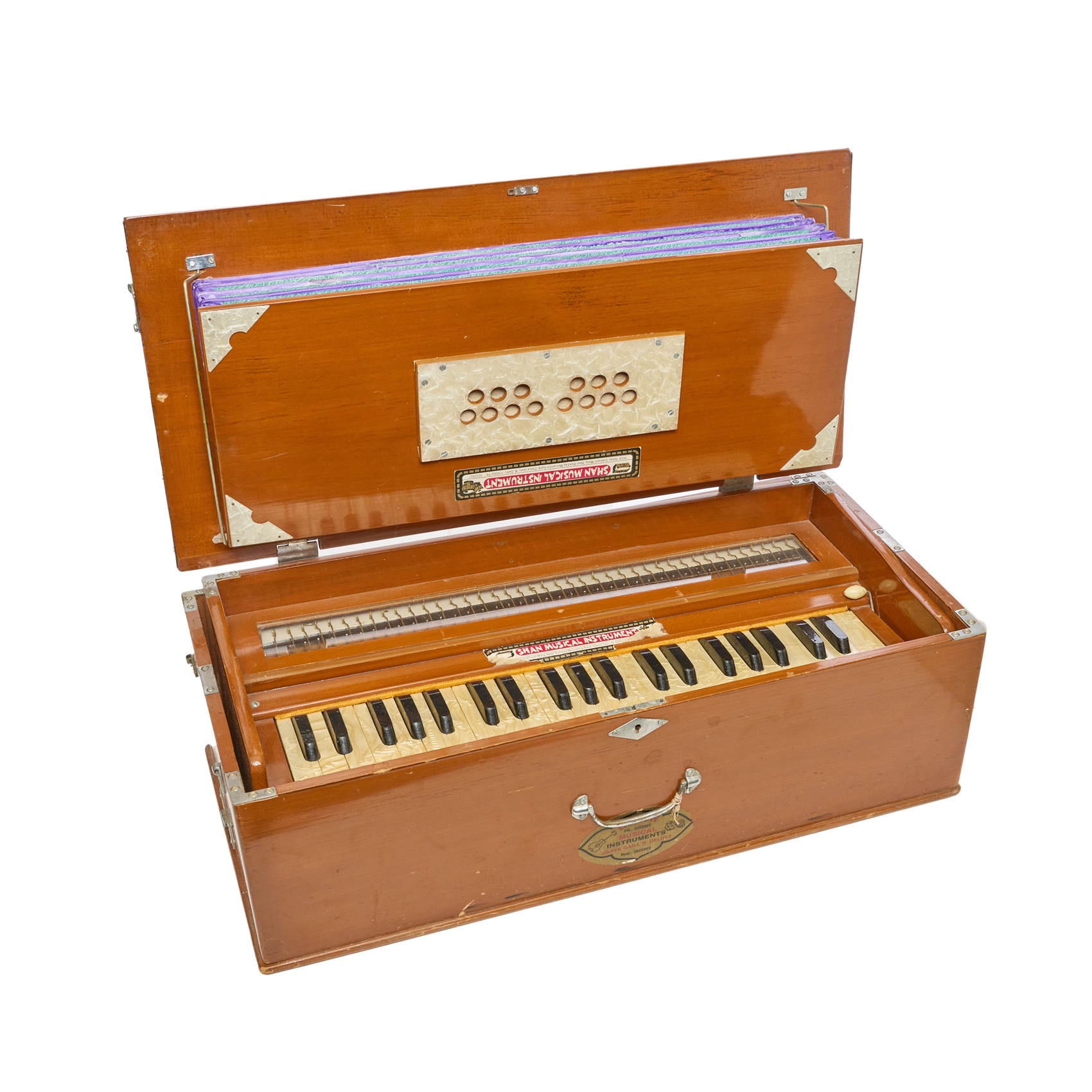 Armonio con caja en madera de la manufactura Shan Musical Instruments, Delhi, India, s.XX.