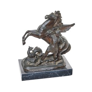 Escultura en bronce plateado sobre peana en mármol verde veteado. Firmada ilegible.