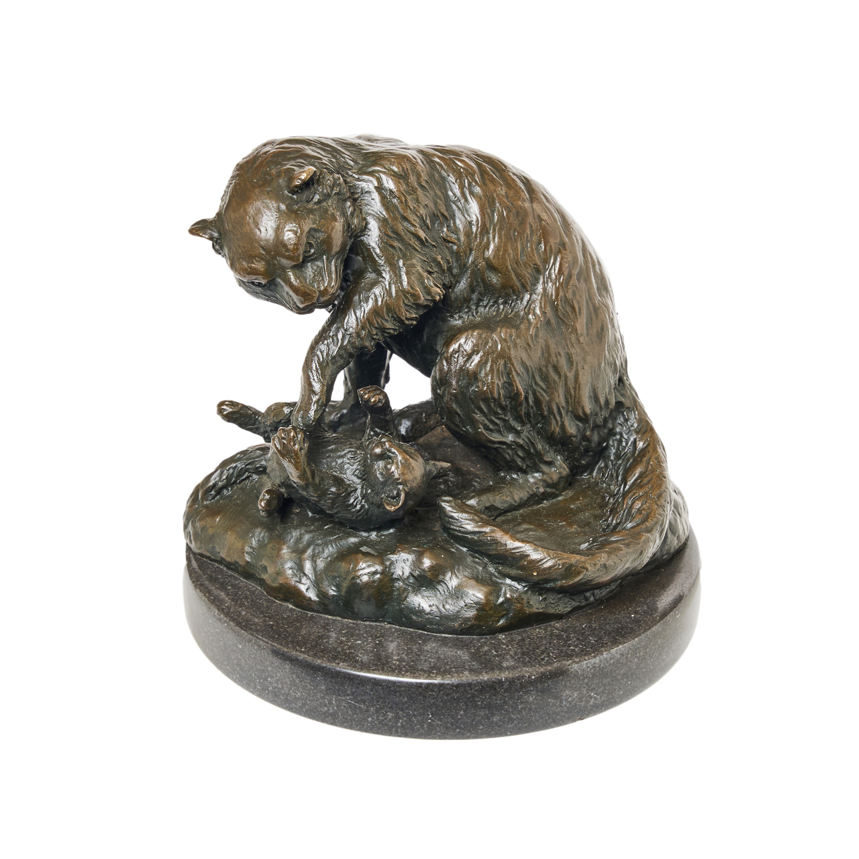 Escultura en bronce patinado sobre base en mármol negro. Firmada.