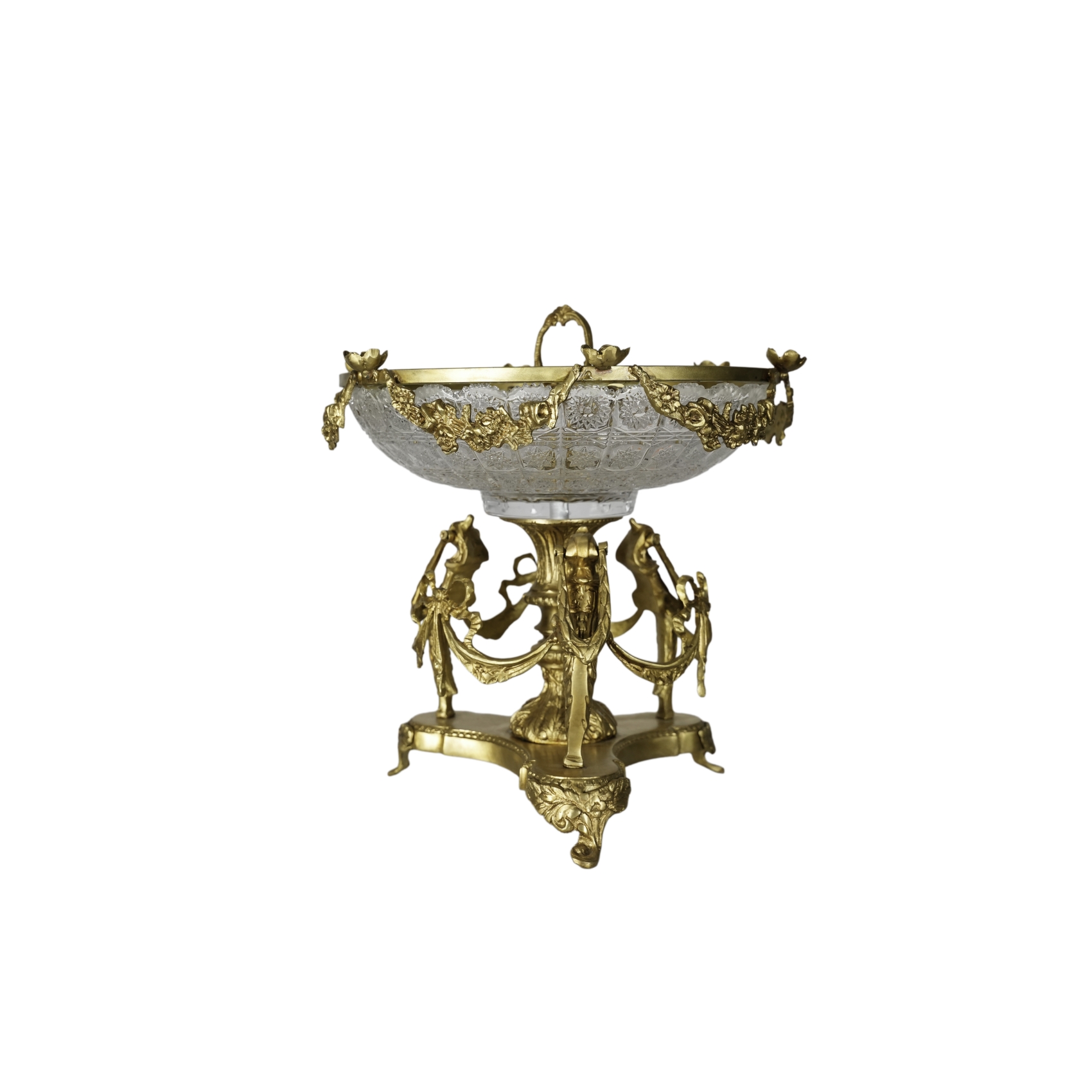 Centro francés en cristal con montura en bronce dorado con decoración vegetal y guirnaldas florales, s.XX.