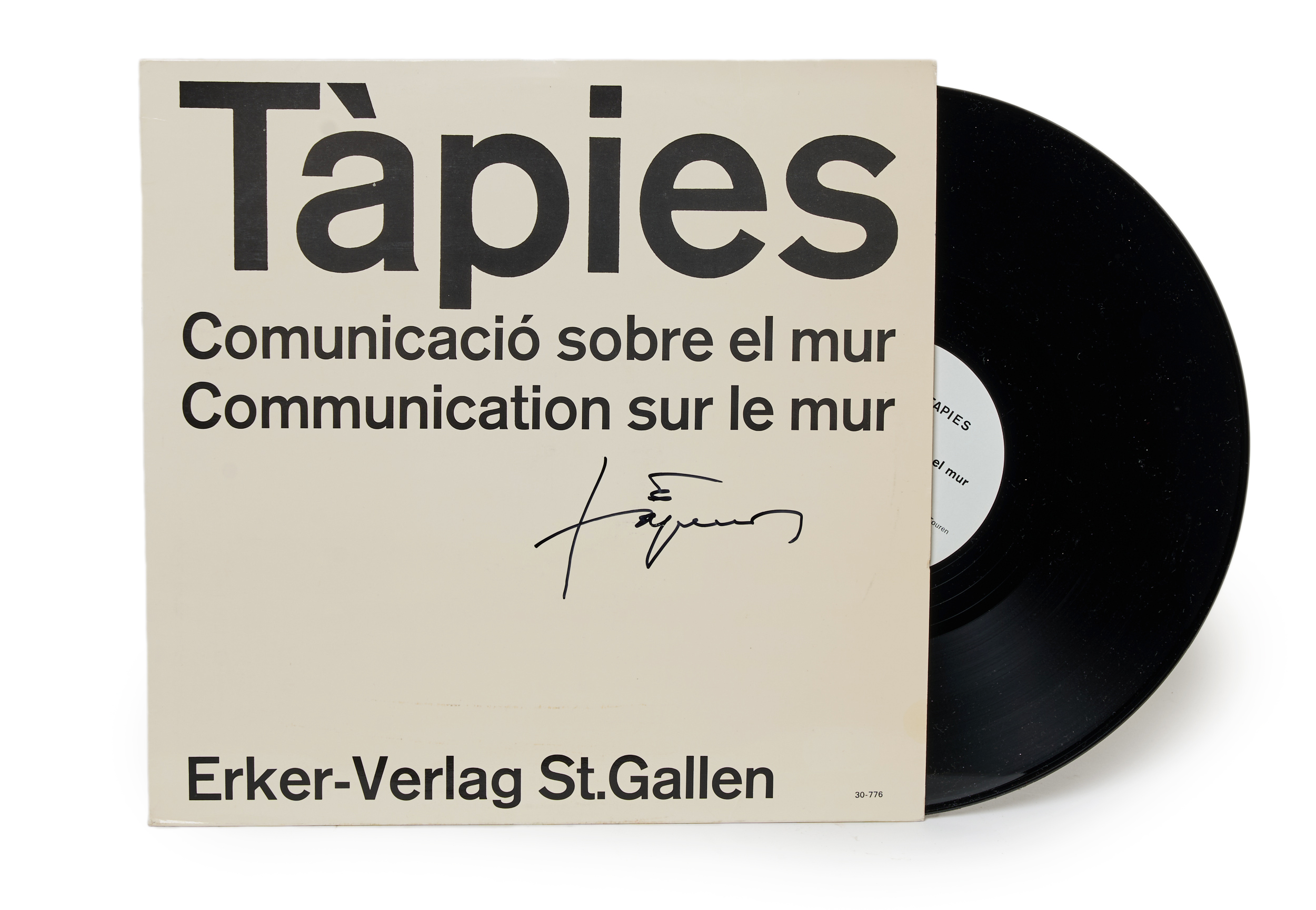 Disco de vinilo LP de 12 pulgadas. Firmado a rotulador en la carátula. Publicado en 1976 por Erker-Verlag, St. Gall, Suiza. Disco no-musical de 16 minutos en el que el propio artista recita el texto de reflexión sobre su obra artística. Cara A en catalán y cara B en francés.